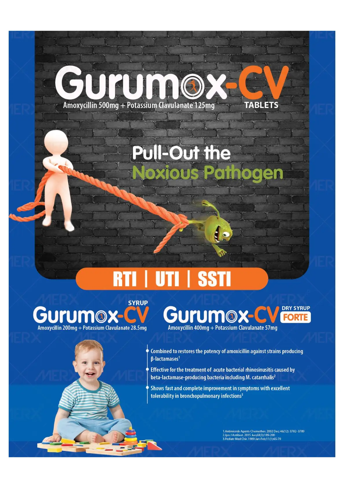 GURUMOX-CV625TABS | Amoxycillin 500mg & Clavulnate Potassium125mg(DPCO) | 10*10 | Visual Image |